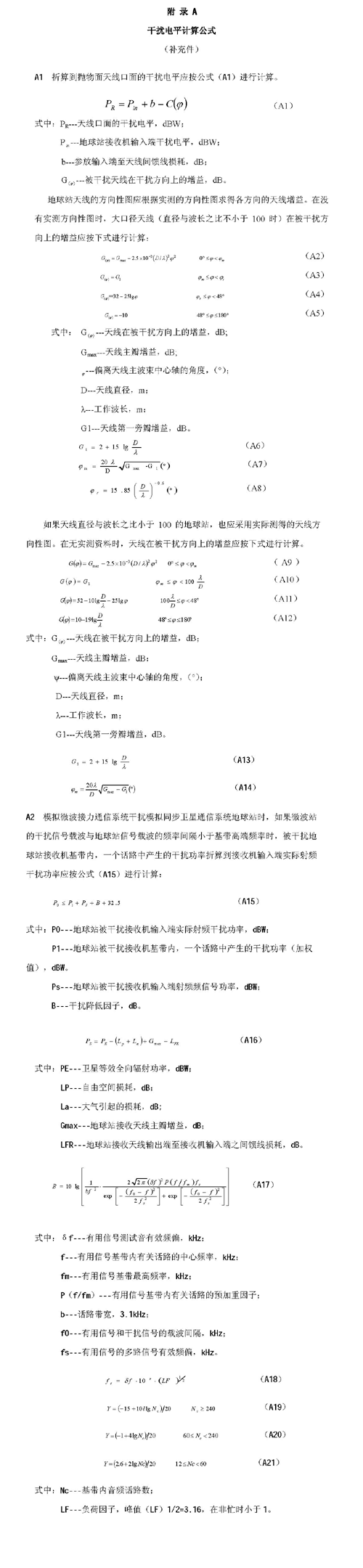 B1.3.3 天線口面處干擾信號電平PR的折算應(yīng)按公式(B1)進行計算。